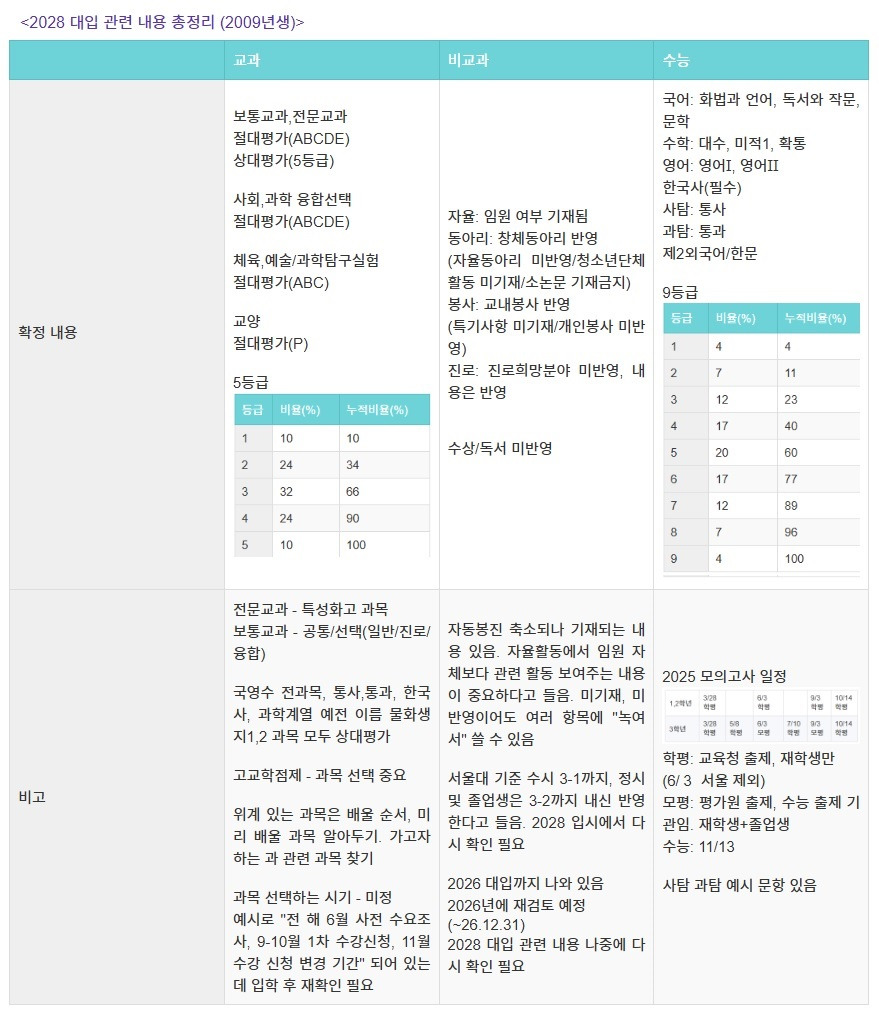 2028 대학입시 관련 내용 정리 (2009년생)
