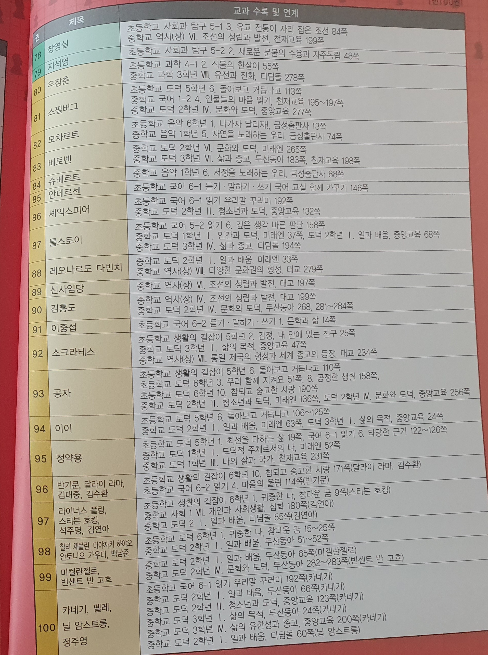 100명의 위인들을 다루면서 교과연계표도 있어서 교과공부 하면서 활용하기 좋을 것 같네요^^