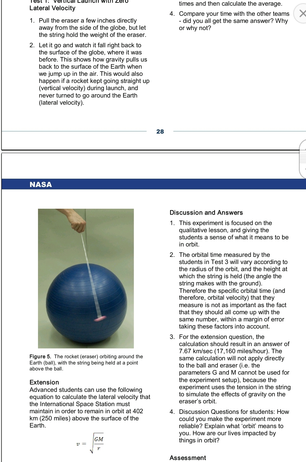 지우개를 그냥 들었다 놓으면 떨어져요. 약한 힘으로 지구 적도 방향과 평행하게 던지면 가다가 떨어집니다. 그런데 충분한 힘을 가하면 끈에 달린 지우개는 공 주위를 뱅글뱅글 돌기 시작합니다. 아주 간단하면서도 신기했어요! ㅎㅎ