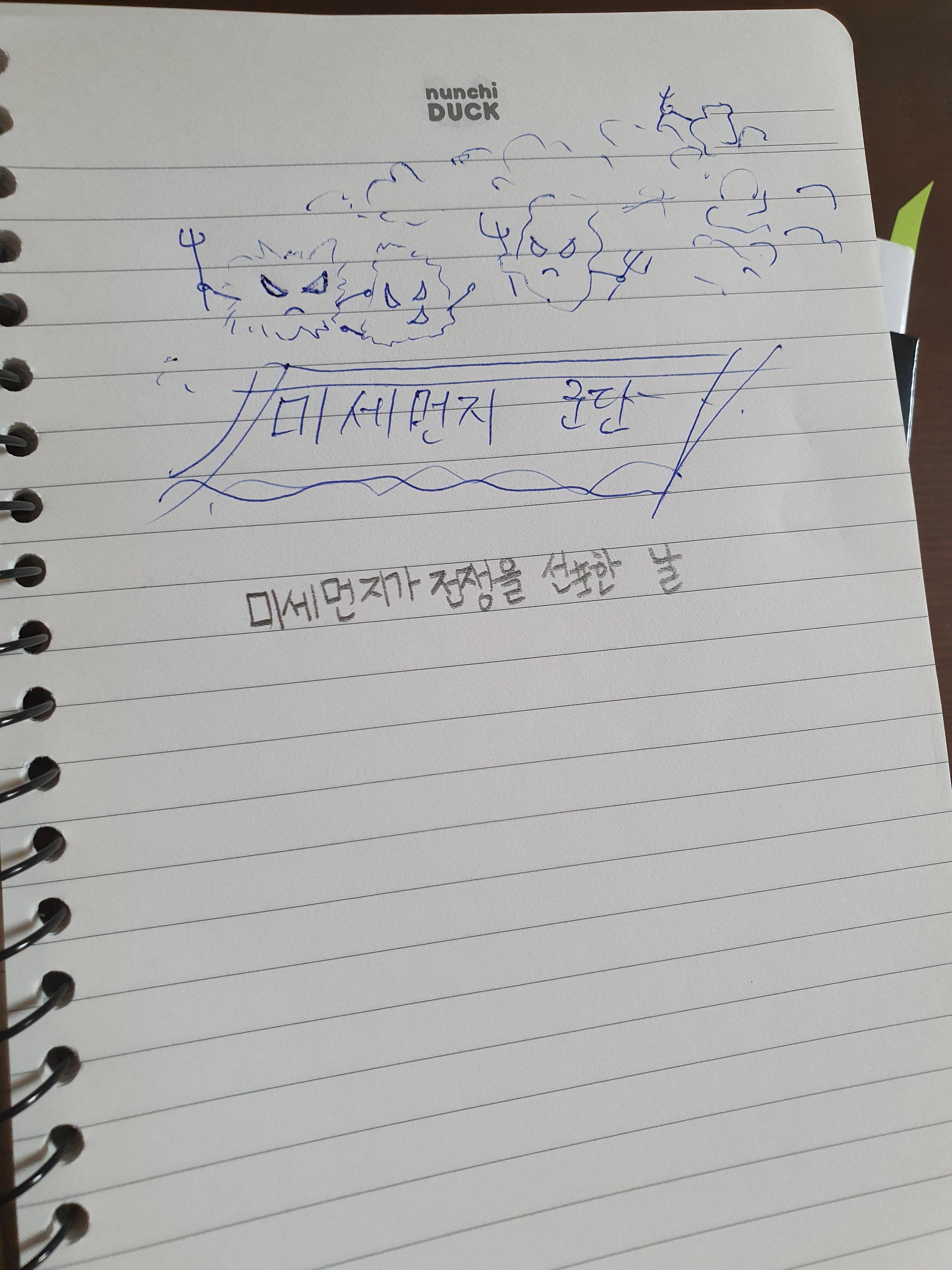 이 날은 미세먼지 군대를 그려달라고 하더니 이렇게 적어놨네요ㅎㅎ