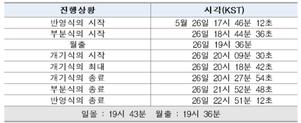 5월 26일 개기월식 천문현상 예보 | 보도자료 | 고객참여 | 한국천문연구원 (kasi.re.kr)