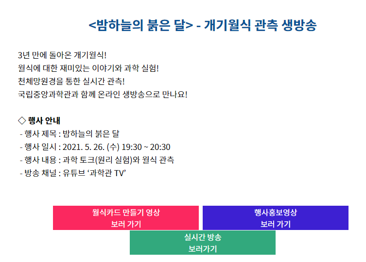 개기월식 관측행사 안내 < 공지사항<소통마당-국립중앙과학관 국문 사이트 (science.go.kr)
