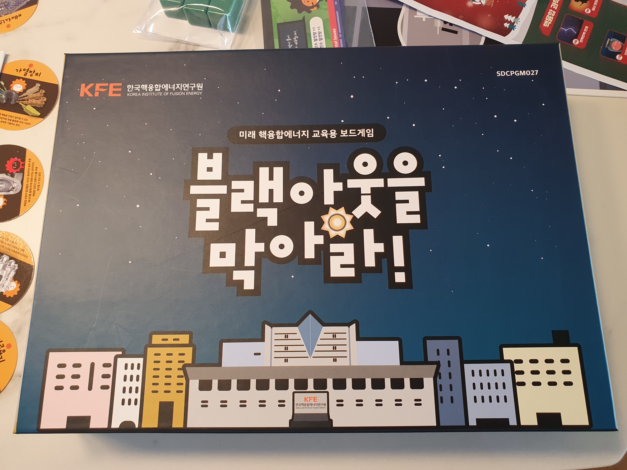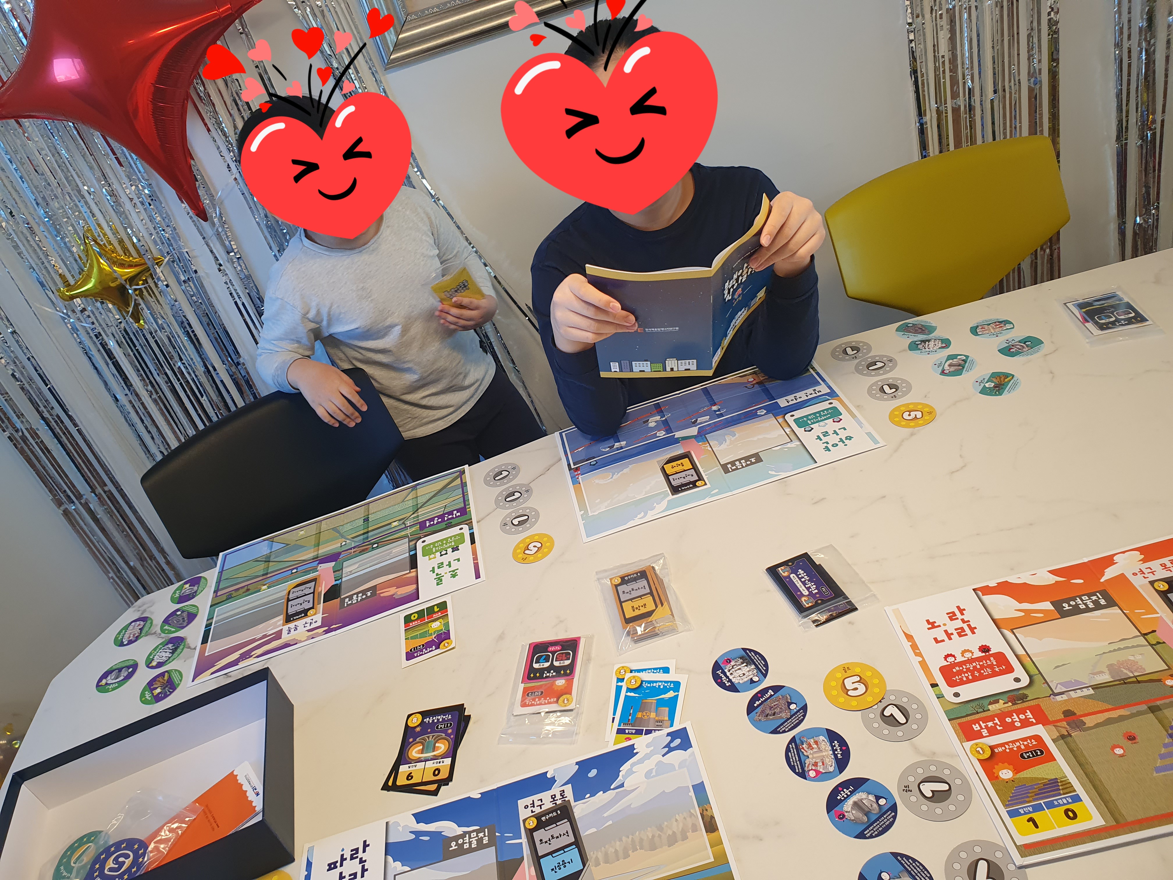 재미난 보드게임 해보면서 전기 공급을 위해 발전소 세워보고 오염물질을 줄이는 노력을 함께 해보는 보드게임이에요. 화력발전은 전기 생산을 하는 대신 오염물질이 나오고, 풍력발전소 등은 오염물질은 없는데 전기 생산이 많진 않죠. 궁극의 핵융합 발전소는 서로 협력해서 연구성과를 모아야 세울 수 있게 됩니다! 보드게임인데 협력을 해야 다함께 윈윈 할 수 있어요~ ㅎㅎ