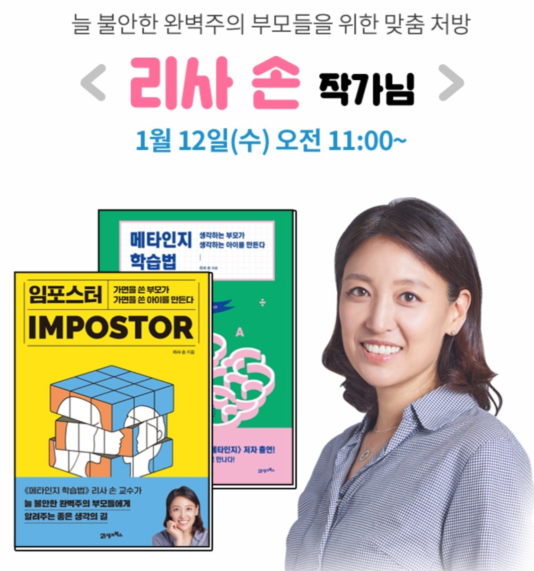 메타인지 학습법을 쓰신 리사 손 작가님이시군요. 메타인지라는 건 지금 내가 어떤 상태인지, 원하는 방향으로 가려면 어떻게 해야할지에 대해 스스로 생각하는 힘이라고 생각해요. 이건 아이들 학습 뿐만 아니라 어른들도 살아가면서 계속 필요한 능력인 것 같아요!