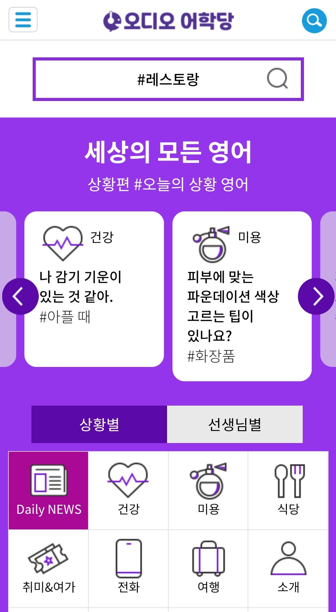 ㅎㅎ 이렇게 강좌 목록 올라와서 아무때나 듣고 싶을 때 들을 수 있어서 좋아요. 대신 여기는 강좌 올라오는 속도가 오디오 어학당 보다는 느려서요. 최대한 빠르게 오늘 내용을 듣고 싶은 경우라면 오디오 어학당에 최신 내용이 좀 더 빠르게 올라옵니다. 저희는 걍 뭐.. 대충 올라온 거 설렁 설렁 듣고 있어서 멜론도 좋아요 ㅎㅎㅎ