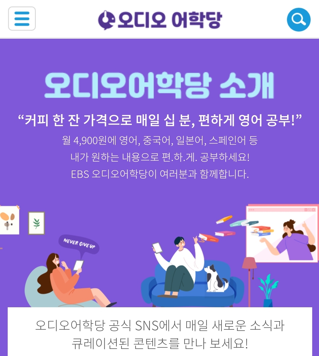위의 링크 들어가시면 자세한 내용 보실 수 있어요 ^^ 처음부터 어느 정도 다진 이후에는 혼자 공부하도록 할 생각이었기 때문에 올해 중학교 입학하면서 영어 학원은 다니지 않고 있는데요. 다른 건 괜찮은데 스피킹이 조금 아쉽더라구요. 화상영어를 해볼까 싶다가 그것도 정해진 시간에 선생님과 약속을 잡고 해야하니 생각보다 부담스러웠어요. 어쩔까 고민하다가 문득 제가 듣고 있던 EBS Power English가 생각났습니다!