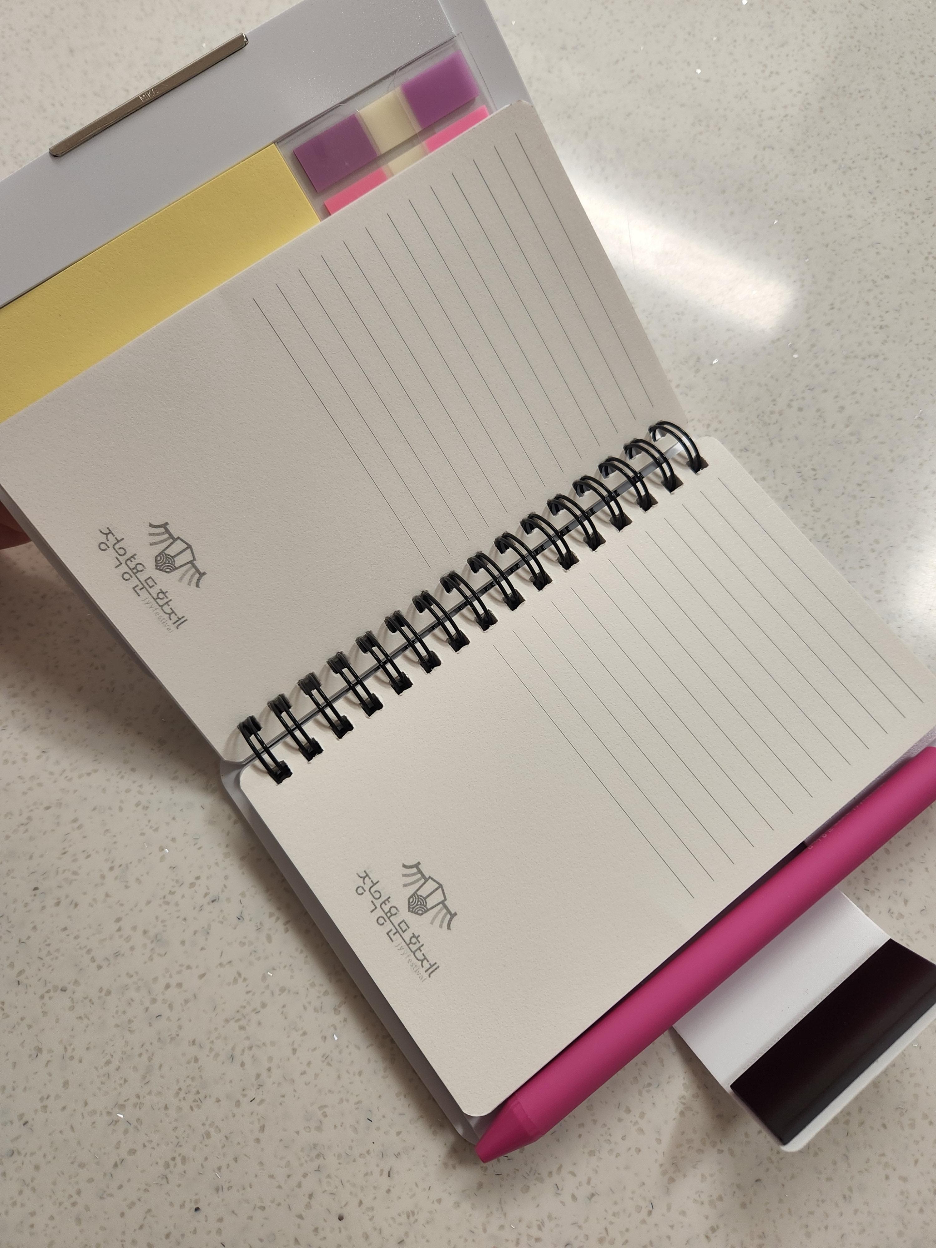 안 쪽에는 이렇게 포스트잇과 인덱스, 볼펜이 같이 있어서 사용하기 편할 것 같아요~
