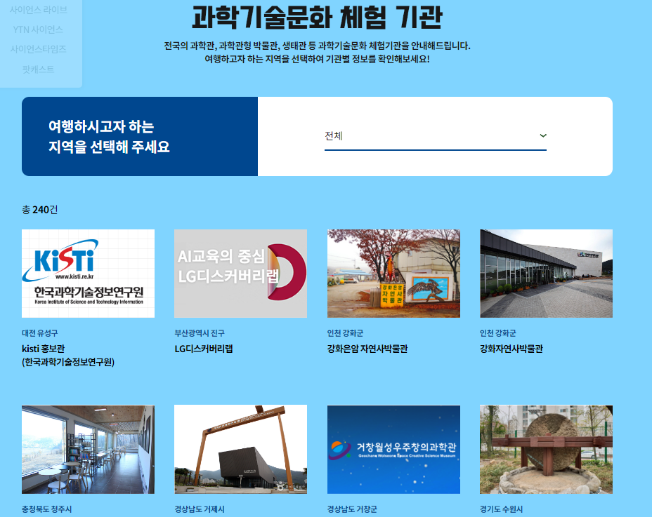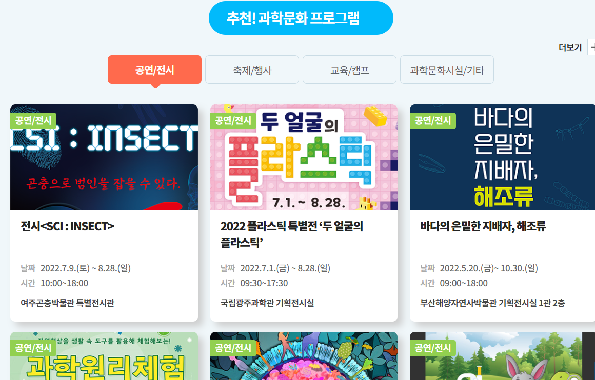 그 밖에도 다양한 과학 관련 체험 및 전시 프로그램이 많네요~ 아이가 평소 관심있던 분야가 있거나, 여행지 근처에 재밌어 보이는 전시가 있다면 한 번 들러보셔도 좋을 것 같아요~
