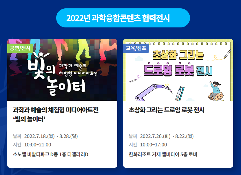 과학융합콘텐츠 협력전시라고 되어 있는데 비발디 파크나 거제 한화리조트에 놀러가실 계획 있다면 아이들과 잠깐 들러보셔도 좋을 것 같아요~