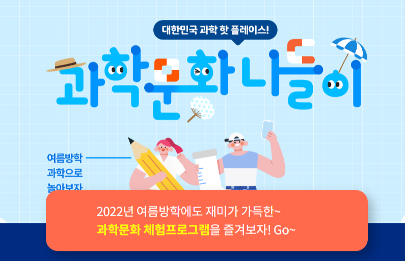 그래도 방학인데 방콕으로 온라인 체험만 하긴 아쉽죠~ 방학에 직접 가서 체험해볼만한 전시나 교육에 대한 내용도 있네요 ㅎㅎ 위의 링크로 들어가시면 과학문화 나들이 자세한 내용 보실 수 있습니다. 간단하게 어떤 내용이 있는지 소개해볼게요 ^^