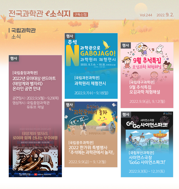전국 과학관 e 소식지 구독 신청하시려면 위의 링크로 들어가시면 됩니다~