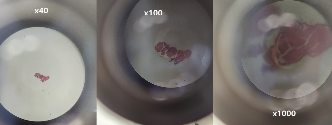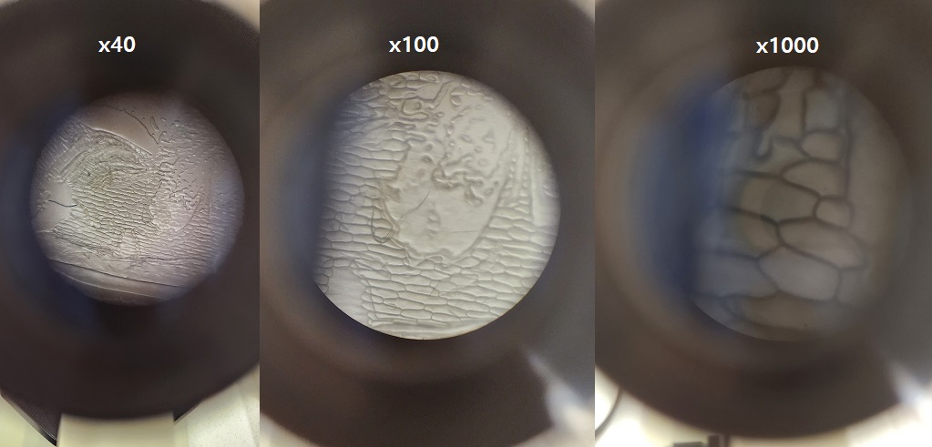 이건 확실히 광학 현미경이 잘 보여요! 사진으로 찍는 과정에서 좀 뿌옇게 나왔는데요. 눈으로 보면 정말 세밀한 부분까지 보입니다. 광학 현미경은 배율도 저배율, 중배율, 고배율 다 볼 수 있어서 좋습니다 ㅎㅎ