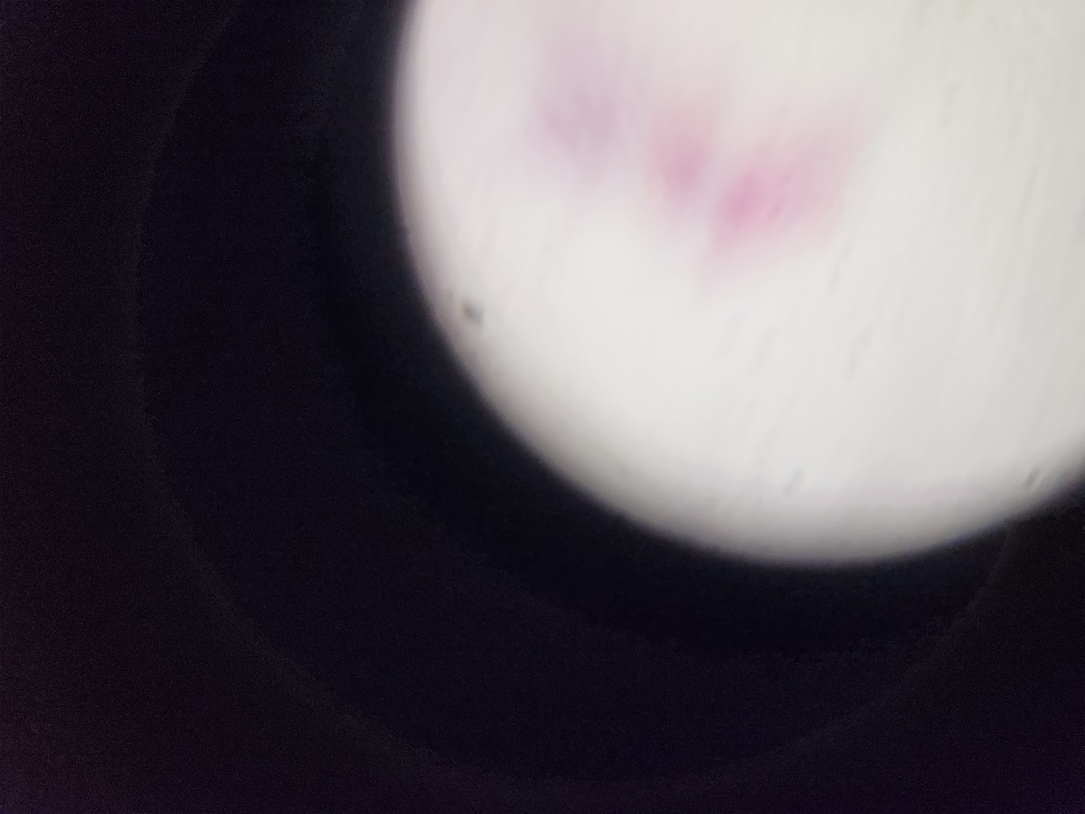 어..... 저희가 촛점을 잘 못 맞춰서 이게 최선이었어요 ㅠㅠ 사진 찍는 과정에서 좀 더 흔들려 보이긴 했지만 아주 자세한 관찰은 힘들 것 같아요. 그래도 말라리아 진단에 필요한 정도로는 볼 수 있다고 하니 현미경이 꼭 필요하지만 비용이 부담스러운 지역을 위한 적정기술로는 훌륭한 제품인 것 같습니다 ^^