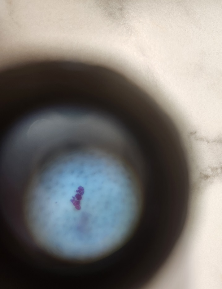 어... 사진 찍기는 루뻬가 가장 힘들어요;;;; 상이 잘 잡히지가 않는데 가까스로 찍었습니다. 생각보다 굉장히 작게 보이지요? ㅋㅋㅋ 그래도 눈으로 직접 관찰하면 이거보다는 크게 보이는 기분입니다. 사진으로 찍고 보니 이럴 거면 그냥 핸드폰 카메라 자체 기능으로 확대하는 게 낫겠다 싶어서 한 번 찍어봤어요 ㅋ