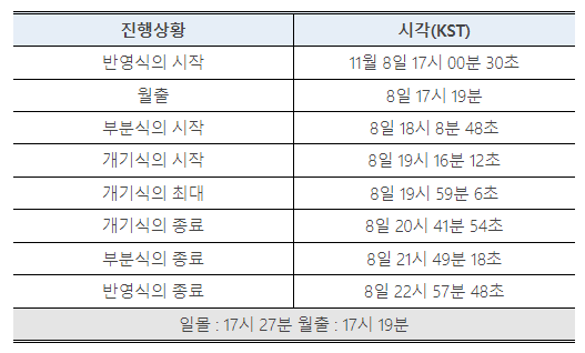 <개기월식 시간표 - 한국천문연구원 자료>