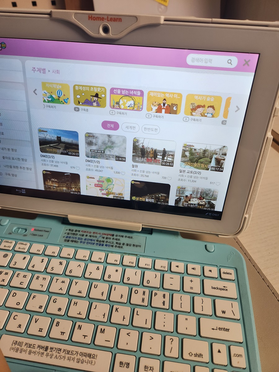 글로벌 리더쉽에 들어가면 다양한 것들을 볼 수 있어서 그것도 좋다고 합니다. 요새는 "선을 넘는 녀석들" 재밌게 보고 있대요. 한국사와 세계사에 관련된 여러 가지 내용이 있다고 하니 내년 5학년에 역사 배우기 전에 이런 컨텐츠로 접해보는 것도 좋을 것 같습니다 ^^