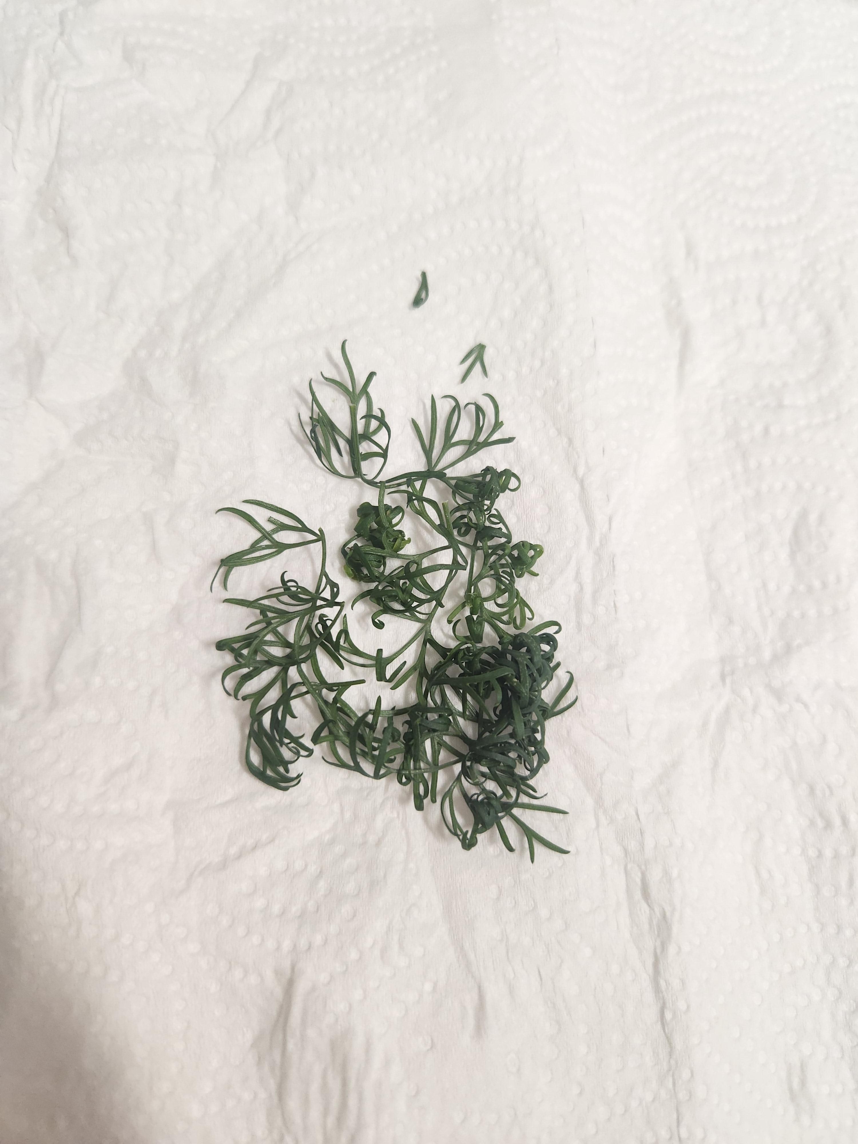 어.. 사실 딜이란 허브가 뭔지 알고 키운 건 아니고 자동수경재배 샀더니 무료로 딸려온 씨앗 중 딜이란 게 있어서 심었던 거라서요 ㅎ 이건 어째 먹어야 하나 하고 찾아보니 이파리만 요리에 쓰는 향신료인가봐요. 줄기를 잡고 손으로 한 번 쓰윽 훑어주니 이렇게 여린 이파리만 잘 나옵니다~ 향기가 좋아요! 가볍게 물로 씻고 키친타올로 물기를 없애줍니다. 찾아보닌 레몬딜버터 만들기가 가장 무난한 활용법 같아요. 레몬 대신 레몬즙, 버터, 딜 다진 것을 잘 섞어서 레몬딜버터를 만들었습니다~