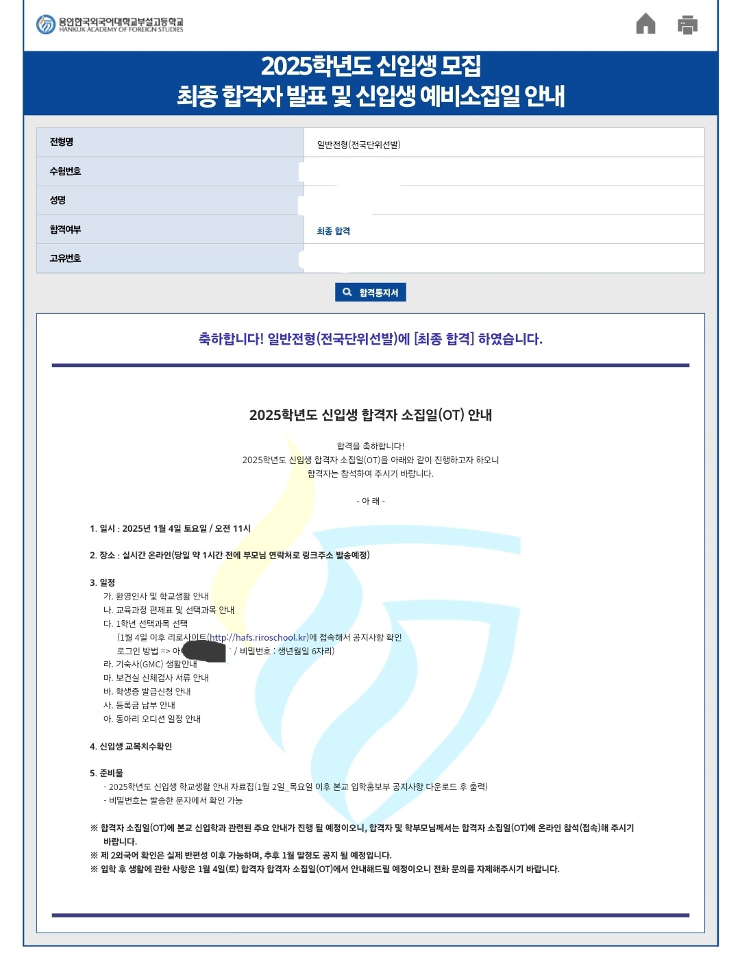 양송이 남매 첫째 양양 외대부고 합격했습니다~^^