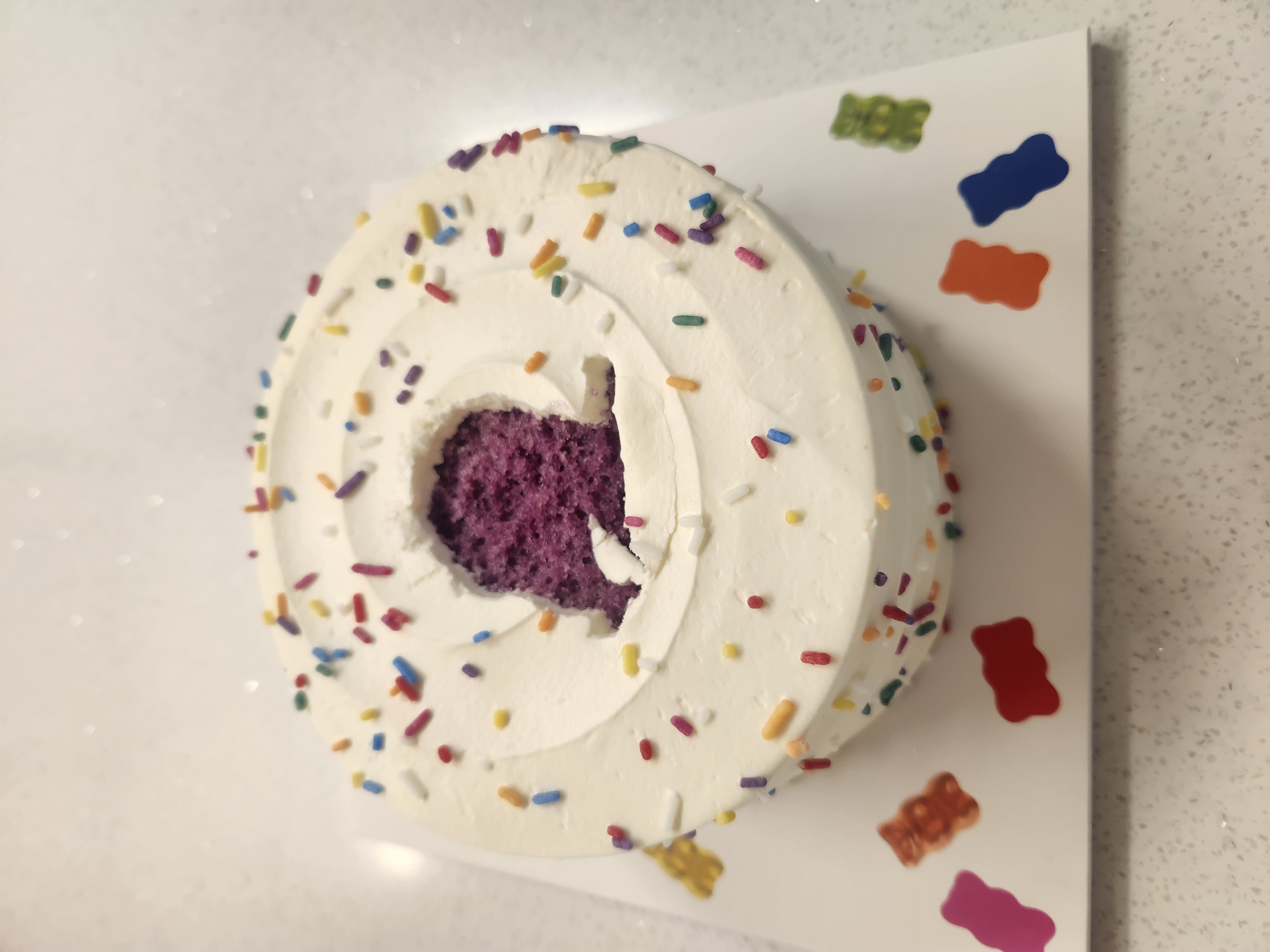 ...비켜주기 싫었구나; 벌써 망했나 싶지만 일단 칼로 하얀 크림을 긁어 어떻게든 바닥을 메꿔봅니다;