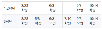 2025 모의고사 일정![]() 학평: 교육청 출제, 재학생만 (6/3 서울 제외) 모평: 평가원 출제, 수능 출제 기관임. 재학생+졸업생 수능: 11/13 사탐 과탐 예시 문항 있음 |