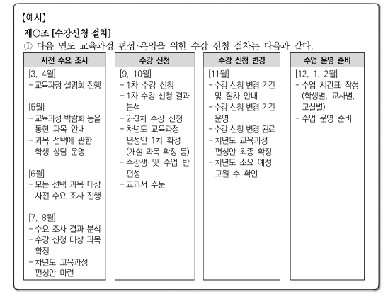 | 비고 | 전문교과 - 특성화고 과목 보통교과 - 공통/선택(일반/진로/융합) 국영수 전과목, 통사,통과, 한국사, 과학계열 예전 이름 물화생지1,2 과목 모두 상대평가 고교학점제 - 과목 선택 중요 위계 있는 과목은 배울 순서, 미리 배울 과목 알아두기. 가고자 하는 과 관련 과목 찾기 과목 선택하는 시기 - 미정 예시로 "전 해 6월 사전 수요조사, 9-10월 1차 수강신청, 11월 수강 신청 변경 기간" 되어 있는데 입학 후 재확인 필요 |
