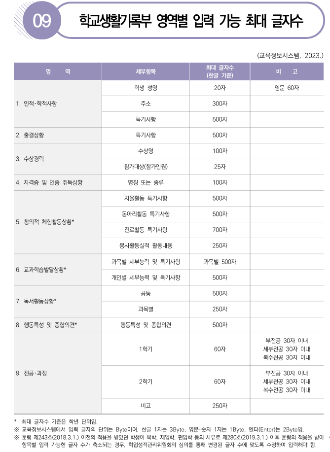 '23학년도 학교생활기록부를 붙임과 같이 안내합니다. 붙임 1. 2023학년도 학교생활기록부(초) 1부. 2. 2023학년도 학교생활기록부(중) 1부. 3. 2023학년도 학교생활기록부(고) 1부. 끝.