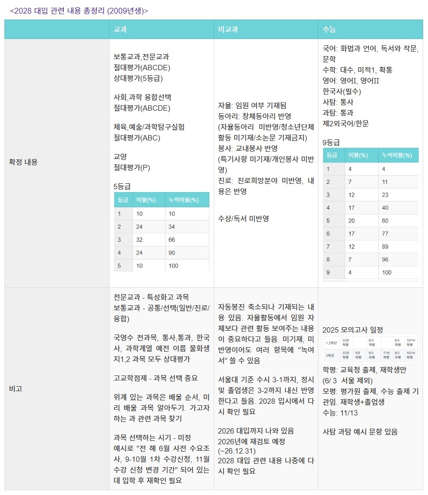 <2028 대입 관련 내용 총정리 (2009년생)>